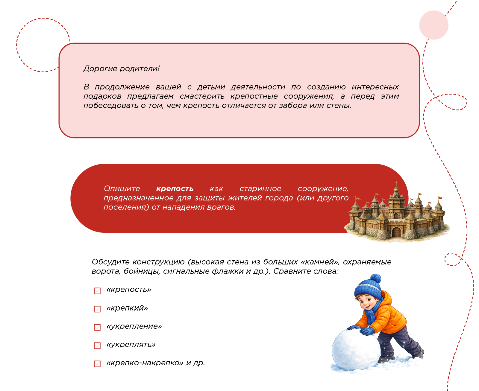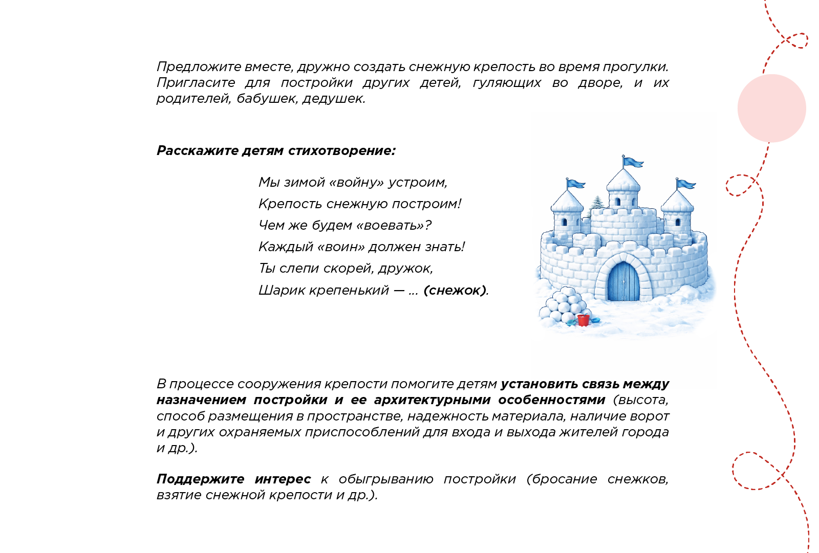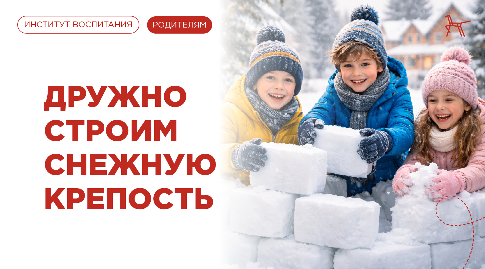 Дружно строим снежную крепость